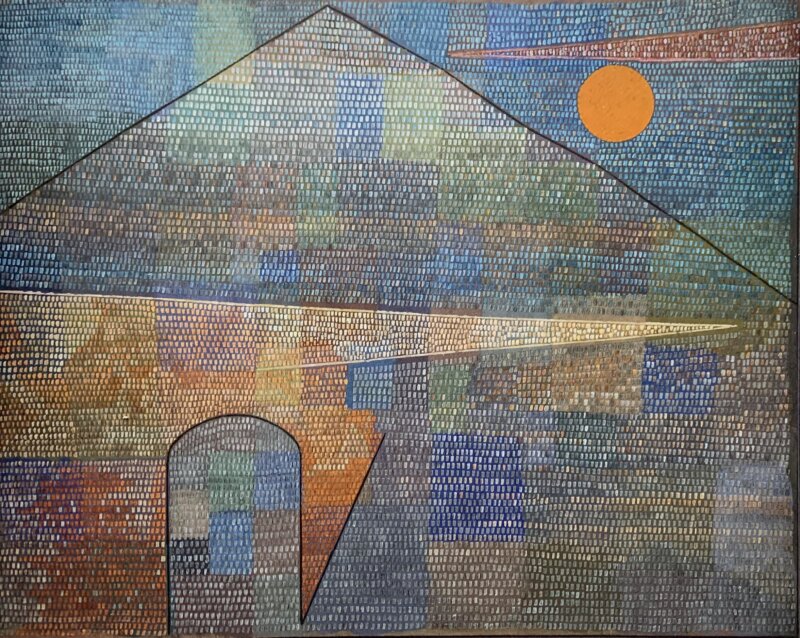 クレーは多彩な色面を構成し、その上に新たな色彩を点描のように上塗りする。この頃クレーは「ポリフォニー」をタイトルに含めた絵を残しており、複数の自律した声部が重なり合う音の重奏と色の重層について考察していた。