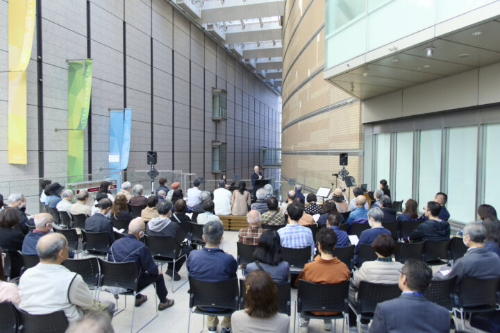 「リハーサルのとき、オトノハを置く前は音がその場をぐるぐる回っている感じがして、自分の音も少し聴き取りづらいなと感じました。でも、置いたあとは音がクリアになって、演奏もしやすくなった印象です。歓喜の広場で演奏したのは初めてだけれど、今後あそこで演奏される方々にも使ってみてほしいですね」