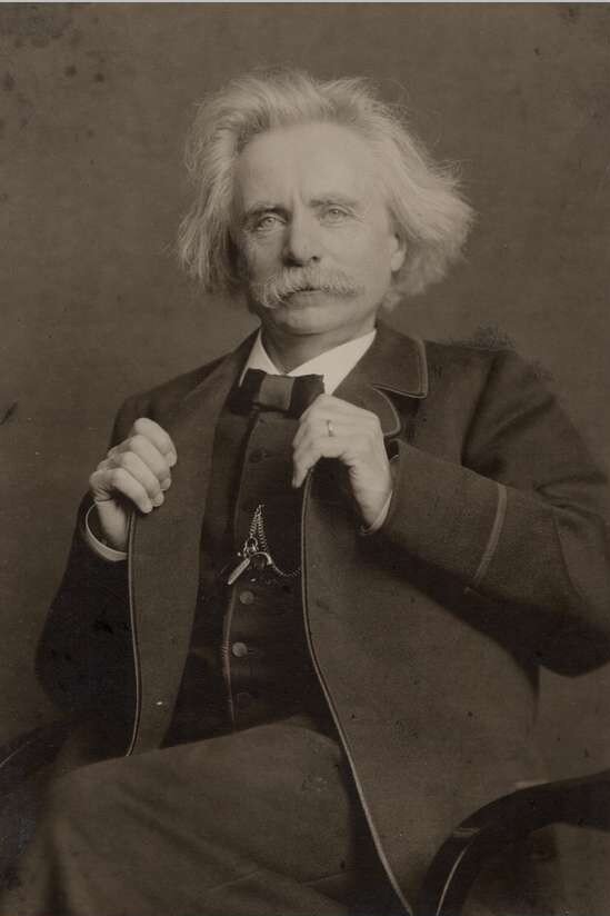 ノルウェーを代表する作曲家。ベルゲンで生まれ、6歳から母にピアノを学ぶ。1858年、『ペール・ギュント』のモデルとも言われるヴァイオリニストのオーレ・ブルに才能を見出され、ライプツィヒ音楽院で作曲やピアノを習得し、欧州の音楽伝統に触れた。1860年代にはコペンハーゲンで北欧の芸術家たちと交流し、リカルド・ノルドロークの影響で民俗音楽の創造を志す。ノーベル文学賞受賞作家のビョルンスティヤルネ・ビョルンソンと協働し、音楽協会の創設にも尽力した。代表作は《ピアノ協奏曲イ短調》、劇付随音楽《ペール・ギュント》ほか、とりわけ小品や歌曲で独自の抒情性を発揮した。欧州各地で演奏旅行を重ね名声を確立し、生涯にリスト、チャイコフスキーら多くの巨匠と交流。1907年、故郷ベルゲンで没した。