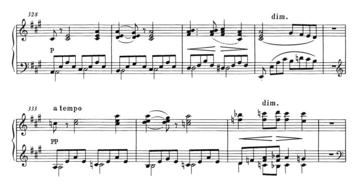 なんと、最初のディミヌエンドの指示は、音そのものに対してではなく、演奏法に対しての指示だったのです!