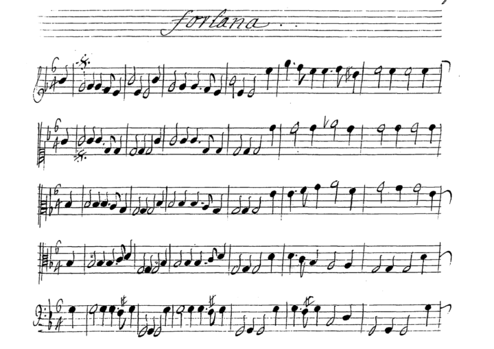 現存する最初のフルラーナは、1578年までさかのぼります。イタリアの作曲家、ジョルジオ・マイネリオ(1530頃〜1582)が書いた作品集《Il Primo Libro de Balli》の中に、「黒人の少女(娼婦?)の踊り フルラーノ(Putta nera ballo Furlano)」「フリウーリ風の苗木の踊り(L’arboscello ballo furlano)」という曲があるのですが、これがフルラーナの起源だと考えられています。こちらは2拍子で活発に踊られていました。