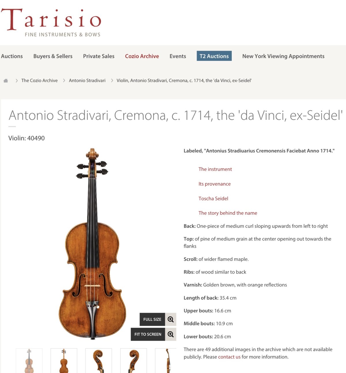 そもそもこの楽器がなぜ「ダ・ヴィンチ」という名前で呼ばれているのかだろうか? タリシオのサイトに書かれた解説では、数あるストラディヴァリウスのなかでも、この楽器は技術的にもっとも洗練された出来を見せた1710年代の作で、形も音もニスの塗りの状態も素晴らしいゆえ、イタリア・ルネサンスの最高峰の画家の名前をつけたのではないかと推測されている。同じ時期に製作された別のストラディヴァリウスには、レオナルド・ダ・ヴィンチに比肩する同時代イタリアの画家・彫刻家「ミケランジェロ」の名を冠したものもある。