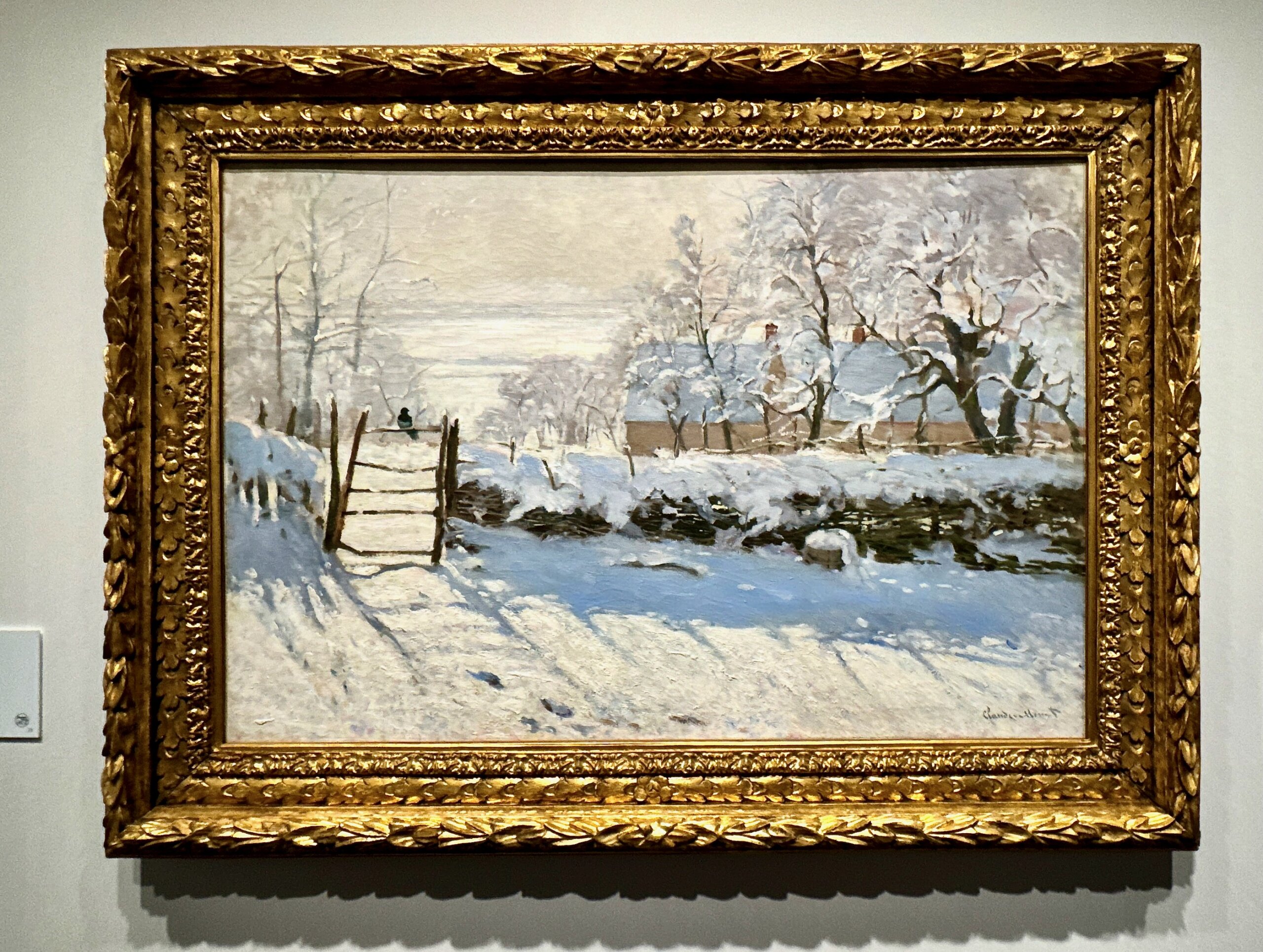 モネの《かささぎ》は、第1回印象派展が開かれる1874年よりも少し前の時期の作品だが、実に美しい雪の情景が描き出されている。陰の部分に青の絵具などを使ってリアリズムを追究しているのも興味深い。モネはかなりたくさん雪を絵に描いたが、ルノワールやシスレーなど他の印象派の画家たちも、雪景色を描いている。