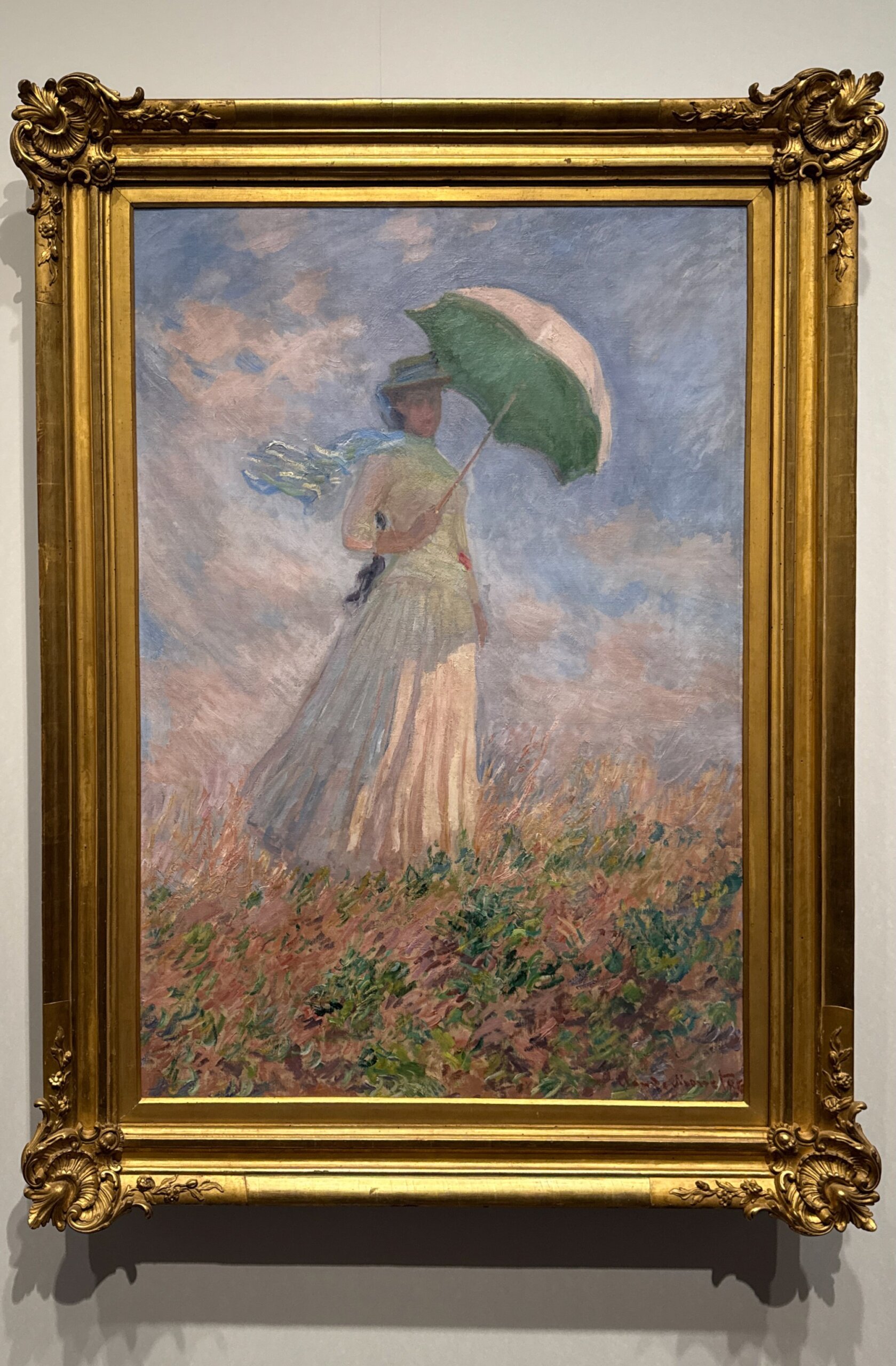モネは、亡くした先妻のカミーユの絵などでは顔をリアルに表した人物画も描いたが、こちらの絵では顔の描写が略されている。そこにも、この絵が風景画たるゆえんがある。モネにとってシュザンヌはすでにかけがえのない娘になっていたと想像するが、絵を通してこの風景の中を一緒に歩いていたのではあるまいか。