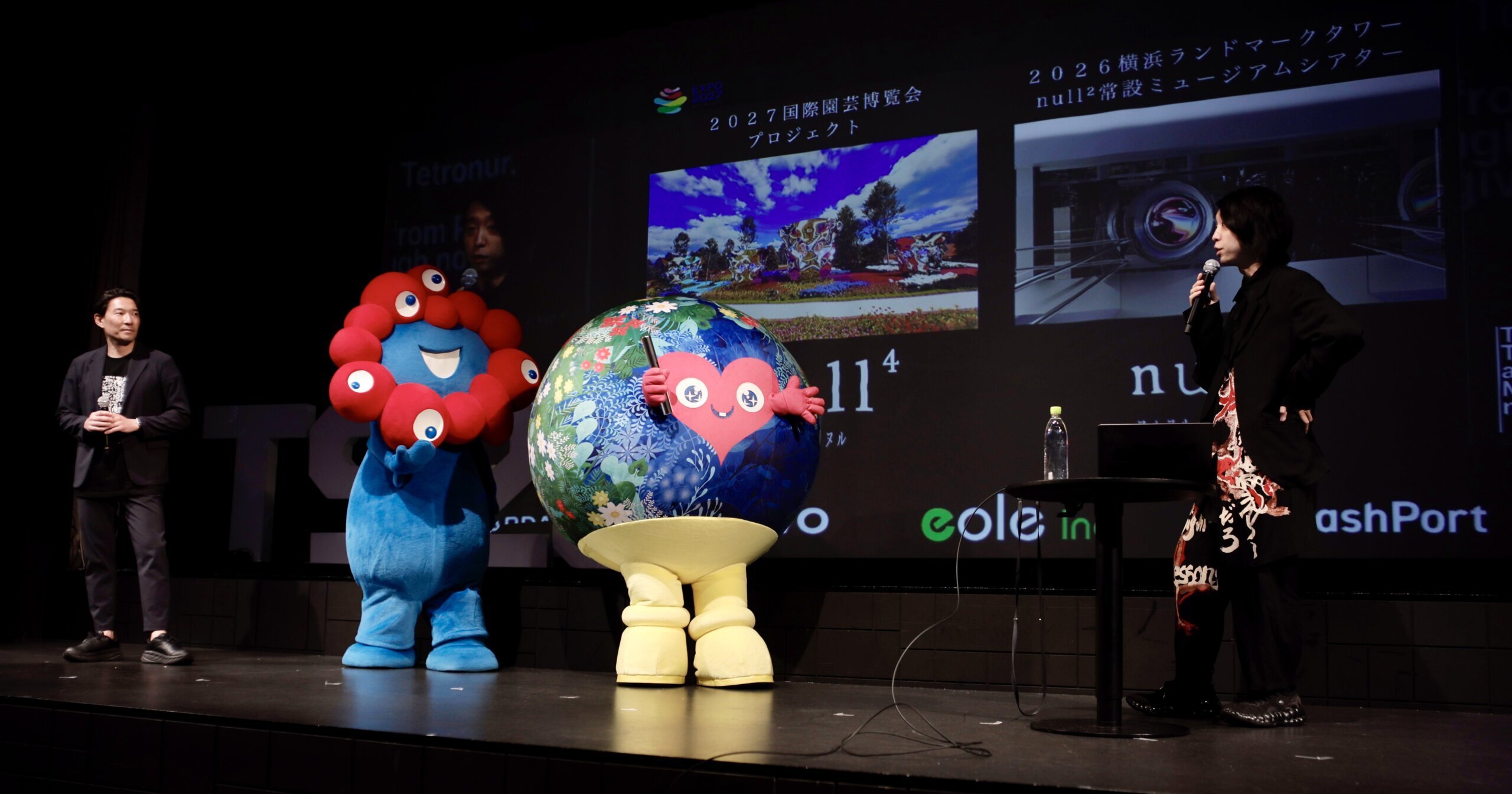 カンファレンスでは、登壇した落合プロデューサーにサプライズで、国際園芸博覧会公式キャラクター「トゥンクトゥンク」と大阪万博公式キャラクター「ミャクミャク」が壇上に登場。nullバトンが西から東へと移動し、ミャクミャクからトゥンクトゥンクへと手渡された。