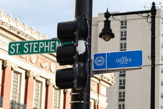 11月6日午後、ボストン市とボストン交響楽団(BSO)は、BSOの本拠地であるシンフォニー・ホール前のセント・スティーヴン・ストリートとマサチューセッツ・アベニューの角を「セイジ・オザワ・スクエア(Seiji Ozawa Square)」と命名し、新たな標識の除幕式を行なった。これは、1973年から2002年まで29年間にわたりBSOの音楽監督を務め、昨年2月に亡くなった小澤征爾にちなんだもの。