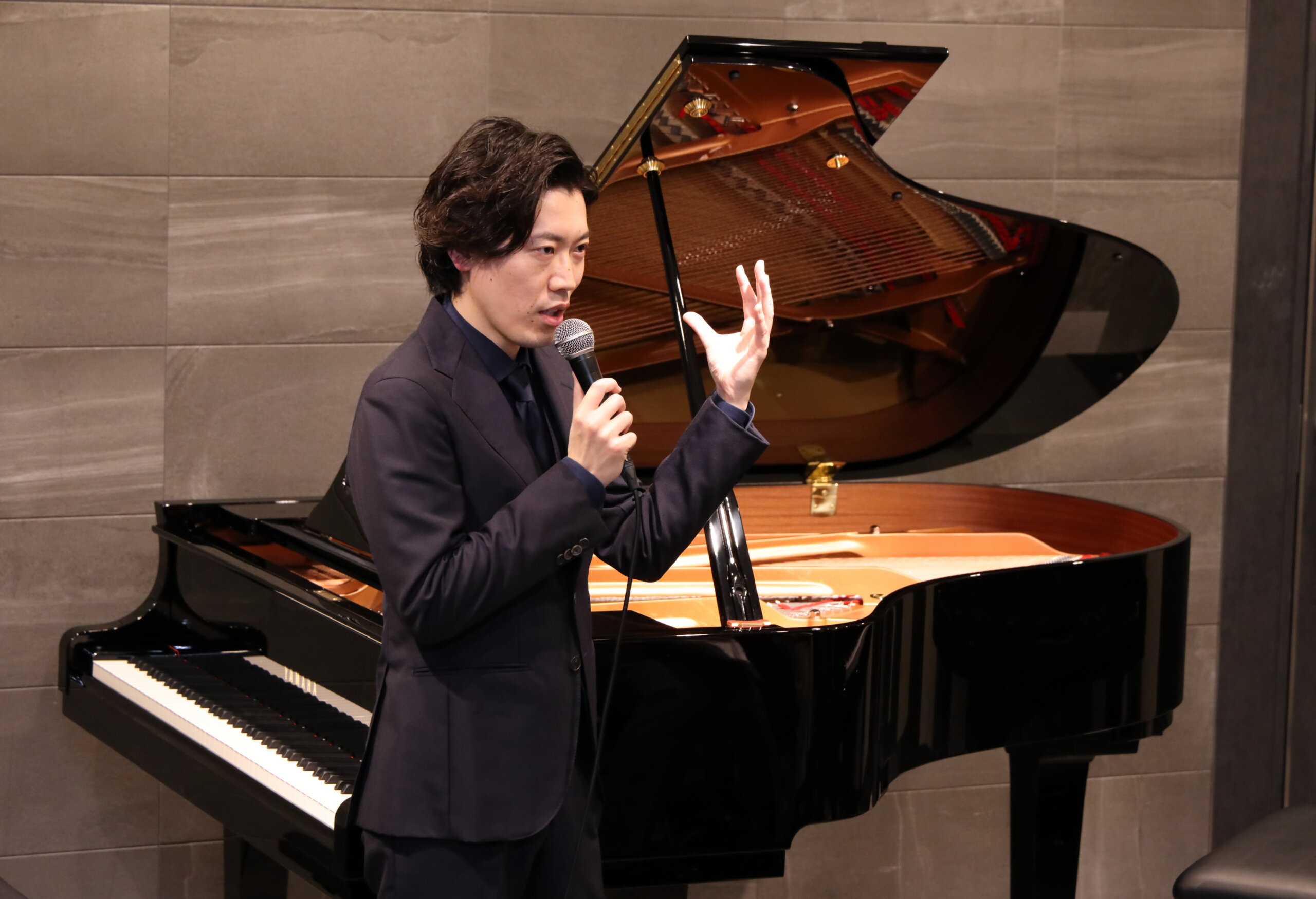 発表会では、ヤマハミュージックジャパン代表取締役社長の松岡祐治氏、企画担当者の西英行氏(鍵盤事業戦略部)、ピアニストの梅田智也氏が登壇し、2台のピアノの実演も行なわれた。