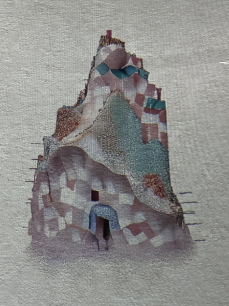 力学的にも強度があるという。強度は建築にとって極めて重要な要素である。この少々自由な変化が鼓のような形の創造によって生まれるというのが実に興味深く、いかにもガウディらしいなと思う。改めて解説パネルを読んでみると、「ガウディの双曲面:直線で複雑な曲線を創造」と書かれていた。納得した。