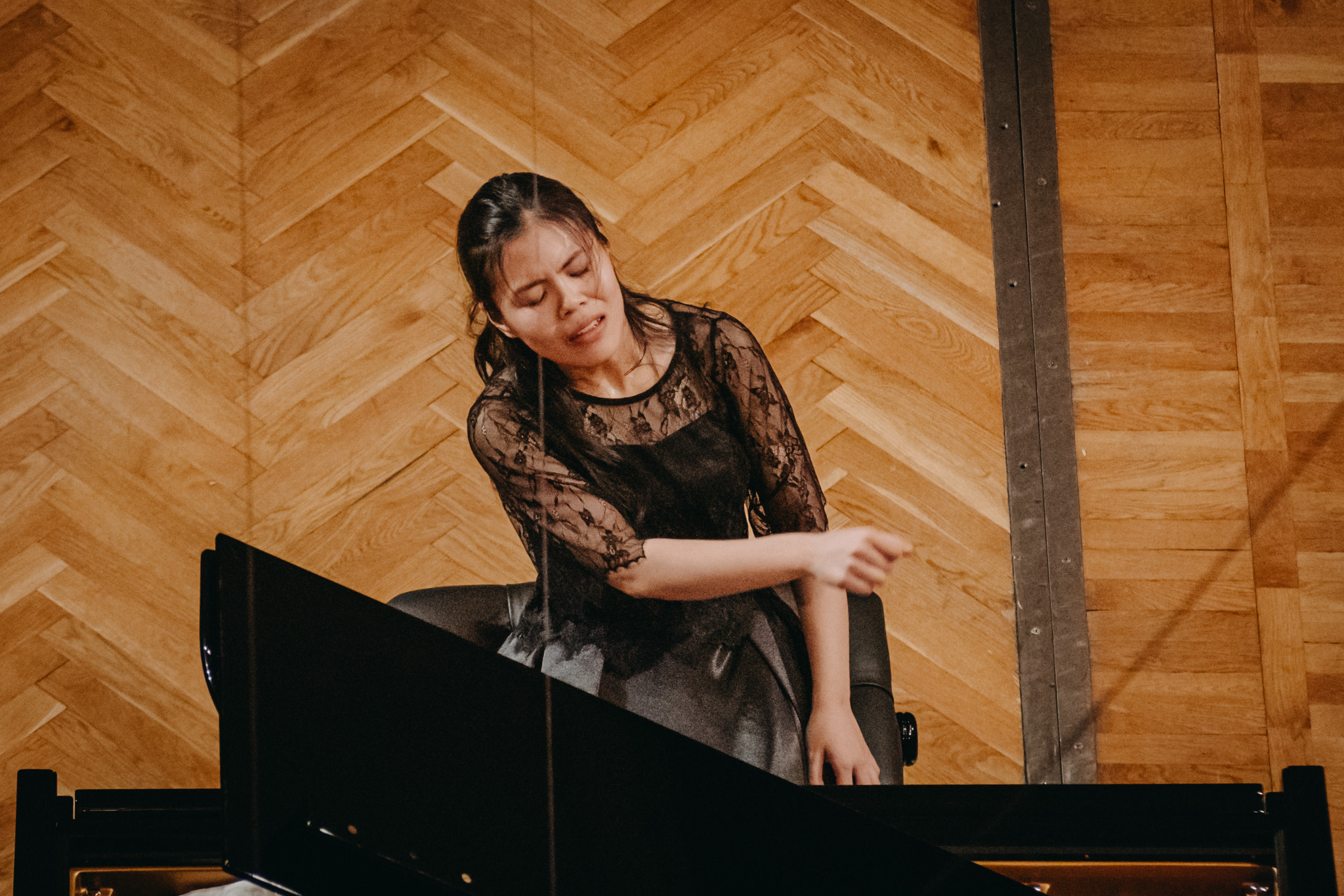 「ノクターン」作品62-1では、作曲家の晩年の心をデリケートに描き出していく。「エチュード」作品25-6では、バスの表現も豊かで、立体感のある音楽を作り上げた。そして「バラード第3番」。彼女の指先から生み出される柔らかな音のヴェールが、客席を包み込む。第1主題の最初の1音が鳴り響くと、あたたかな光が差し込むような美しい情景が浮かんでくる。あたかも目の前でドラマが繰り広げられているようなリアリティに満ちた演奏であった。