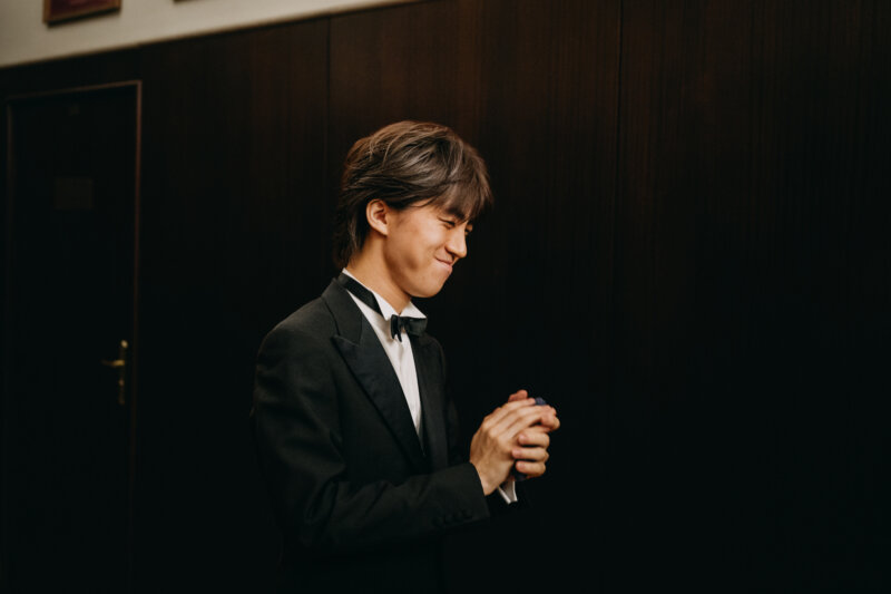 フィルハーモニーホールは、うしろで聴くとかなり残響もあり、豊かな響きが聞こえると思います。でも、舞台の上では、音が細く、痩せた音に聞こえます。音が痩せているからと頑張ってしまうと、ホールのうしろでも音がうるさく聞こえてしまいますし、何もしなければ、内にこもるような音になってしまいます。ですから、その音のバランスをとるのがなかなか大変なのです。(バランスをとる)中間地点を、できるだけ自然なところを探すように心がけました。